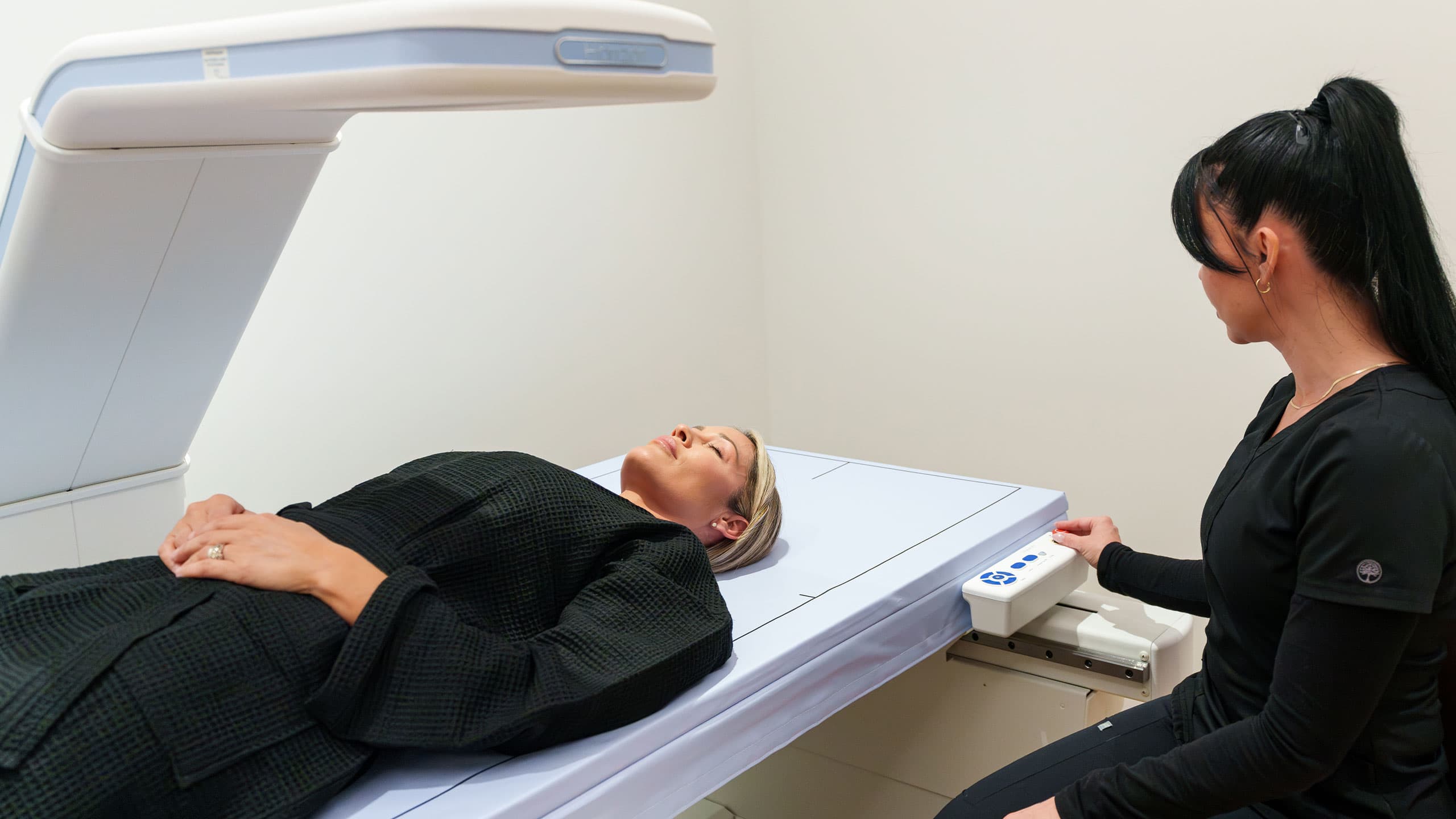 A scanning arm passes over your body while a second X-ray measures bone, fat, and lean tissue. Afterward, you'll receive a detailed report showing your body composition, bone density, and regional fat distribution.