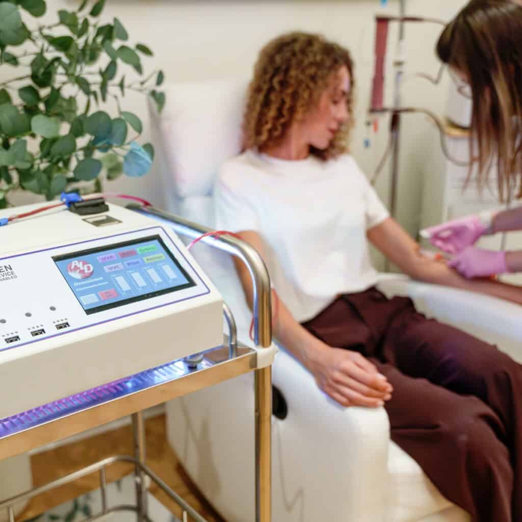 During EBO2, your blood is circulated through a machine that infuses it with medical-grade ozone and passes it through high-efficiency filters. This process is associated with oxygenation, detoxification, and stimulation of immune and mitochondrial function.